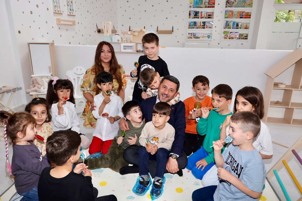 Başkan Arı’nın İşyeri Açılışında Çocuklarla Keyifli Anları