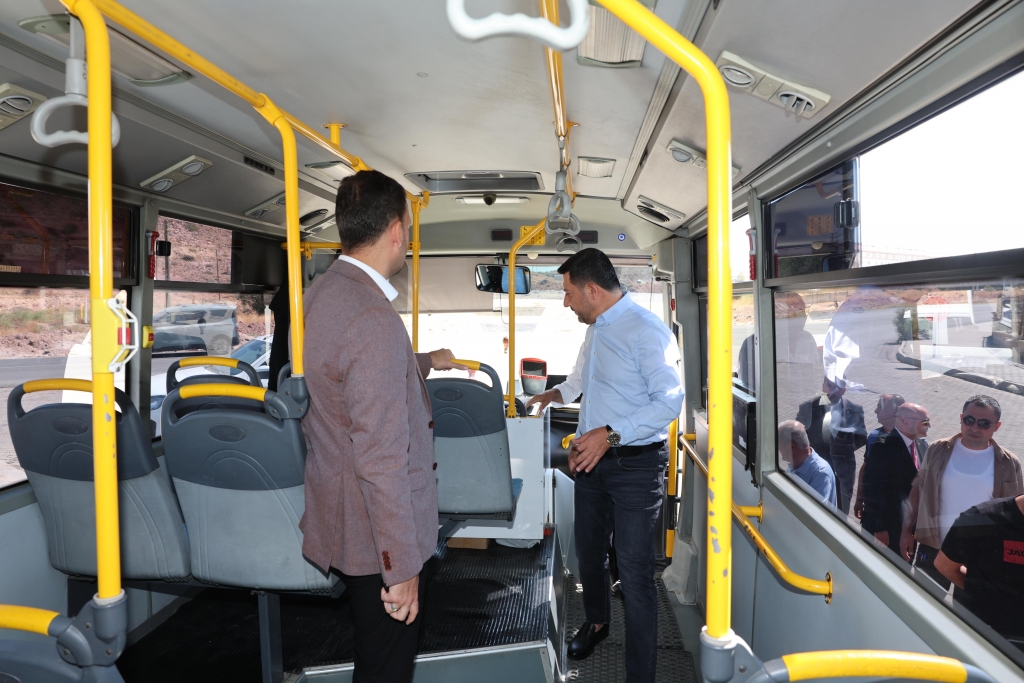 İçerisinde Nevşehir Belediye Başkan Yardımcısı İbrahim Yüzer ile Nevşehir Şoförler Otomobilciler ve Nakliyeciler Esnaf Odası Başkan Cemal Ulukuş’un bulunduğu sohbet sonrası Nevşehir Başkanı Rasim Arı, heyet ile birlikte durakta bulunan özel halk otobüsünü yerinde denetledi.