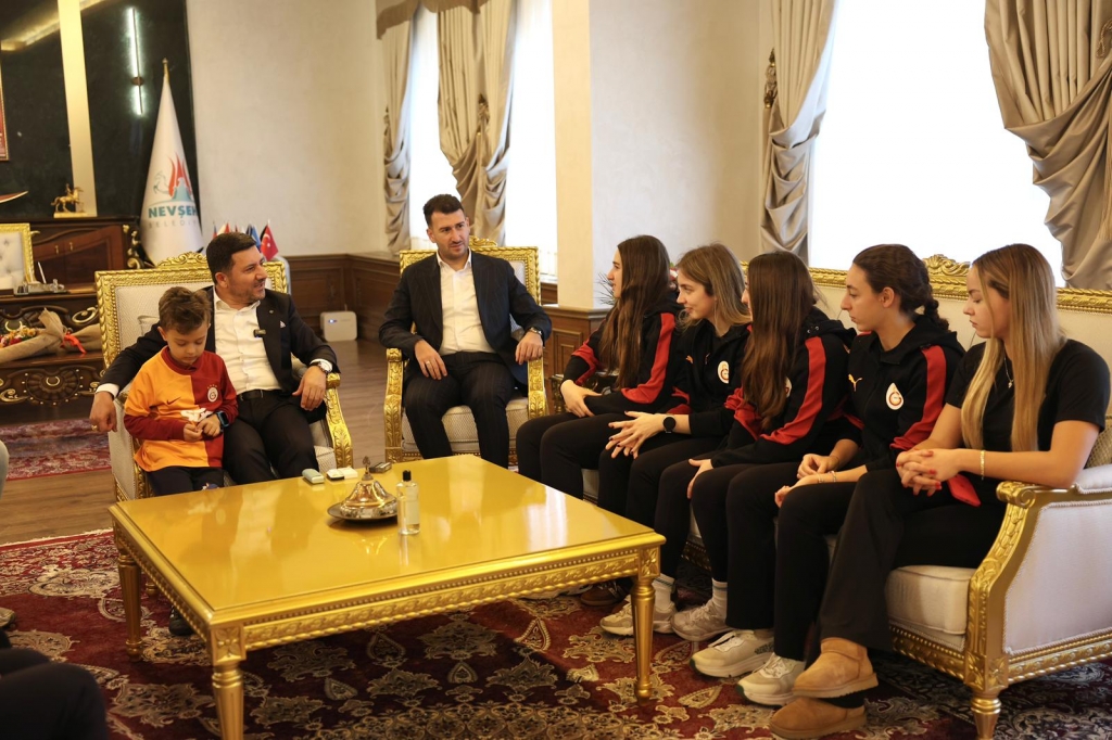 Kadınlar 1. Lig Altın grubunda mücadele eden Nevşehir Belediyesi Spor Kulübü Kadın Sutopu takımının davetiyle Nevşehir’e gelen Galatasaray Sutopu Kadın takımı Nevşehir Belediye Başkanımız Rasim Arı’yı makamında nezaket ziyaretinde bulundu.