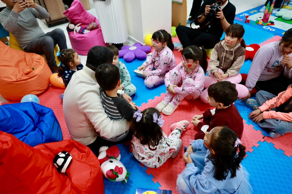 Sıcak ve samimi bir atmosferde düzenlenen etkinlikte, masalı Belediye Başkanı Rasim Arı bizzat anlatarak çocuklarla keyifli anlar yaşattı. Pijama temasıyla hazırlanan atölye, çocukların kendilerini rahat ve güvende hissetmelerini sağlarken, masal dünyasının büyülü kapıları aralandı. Masal anlatımı sırasında çocuklar hayal güçlerini kullanarak hikâyeye dahil olurken, dikkat ve dinleme becerilerini geliştirme fırsatı buldu.