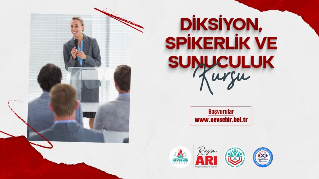 Nevşehir Belediyesi Gençlik ve Spor Hizmetleri Müdürlüğü bünyesinde faaliyetlerini sürdüren Kapadokya Eğitim Merkezi (KAPEM)’de Diksiyon, Spikerlik ve Sunuculuk kursu açılacak.
