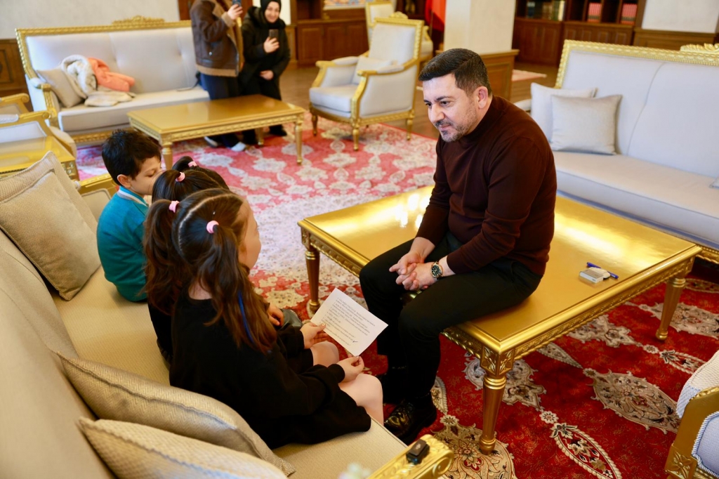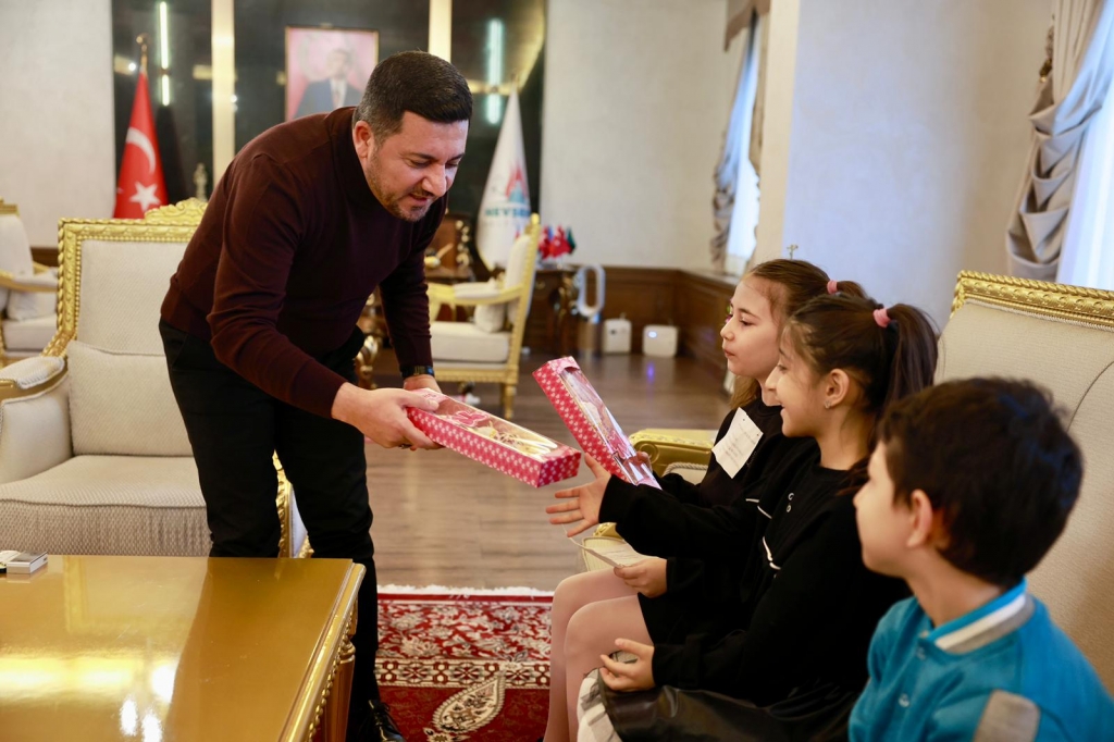 Minik misafirlerini makamında konuk eden Belediye Başkanı Rasim Arı, ilkokul 2. Sınıf öğrencilerinin yönelttiği sorulara cevap vererek çeşitli hediyeler verdi.