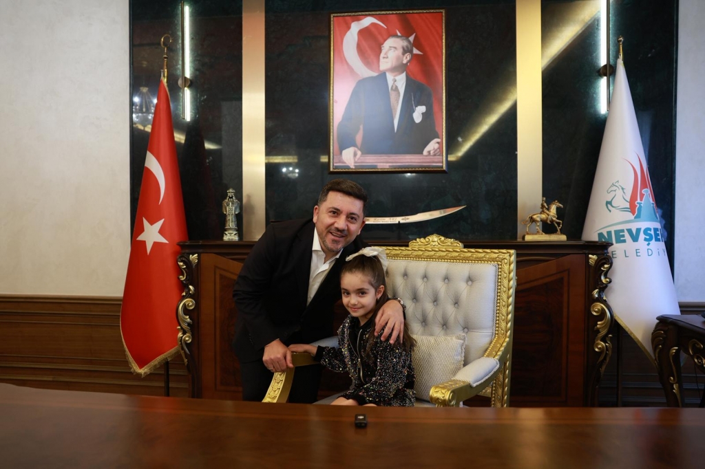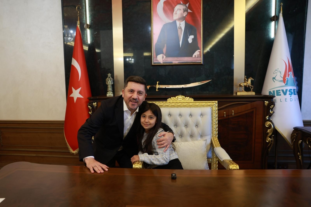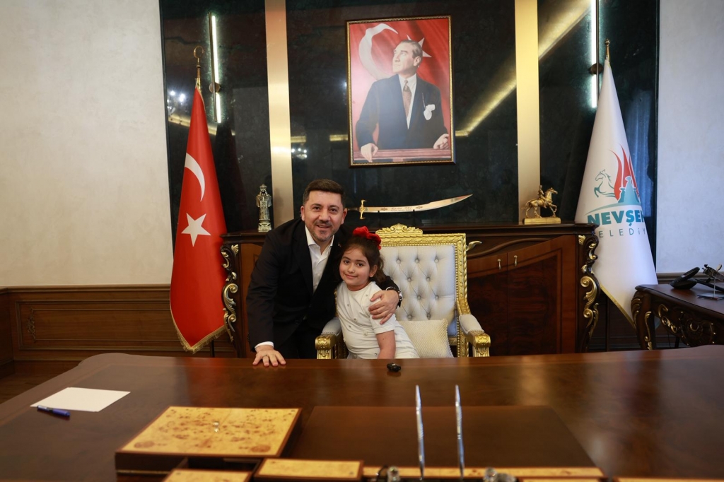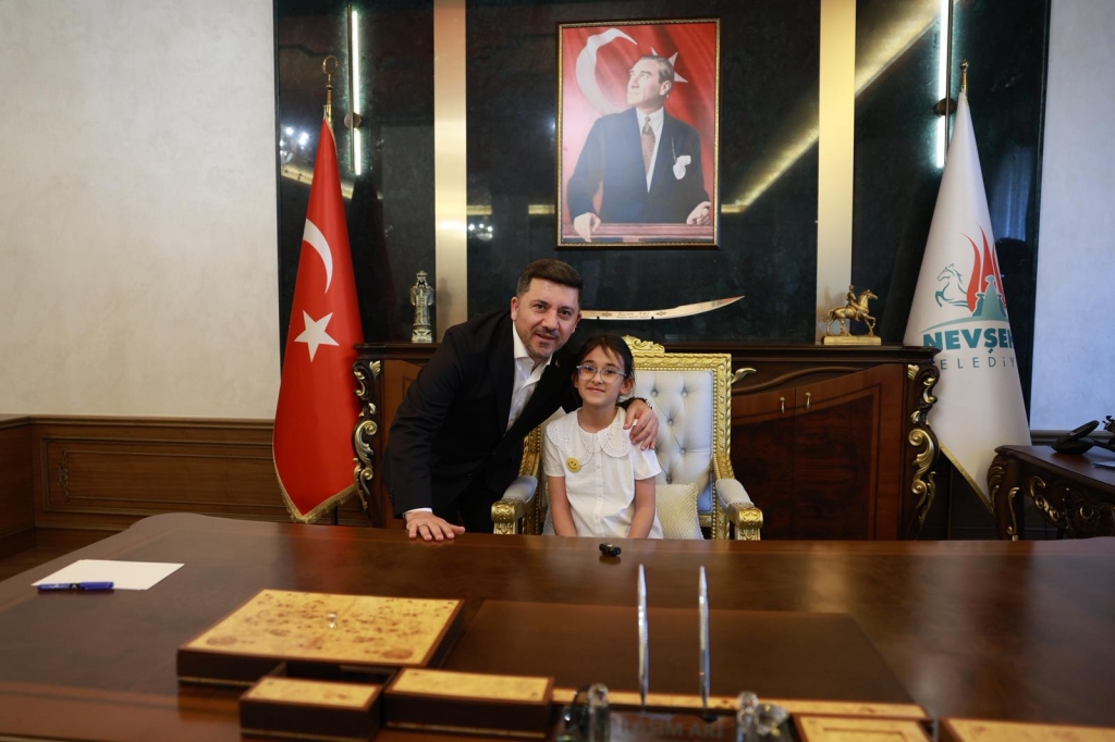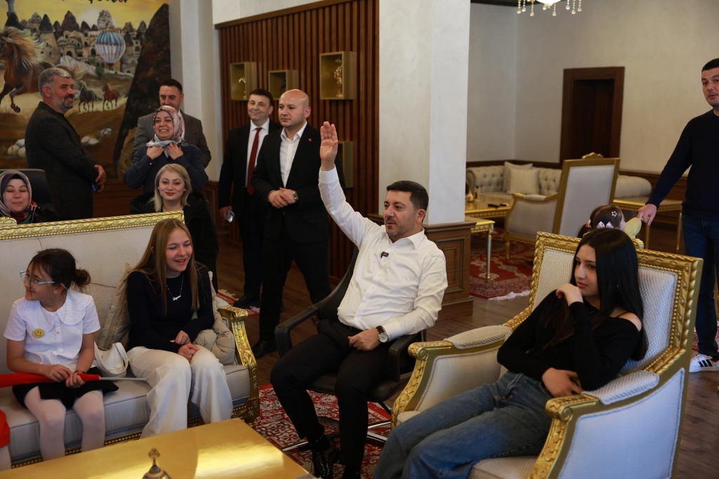 23 Nisan Çocuk Bayramı dolayısıyla Başkanlık Makam koltuğuna oturan Mihriban Emin Günel Ortaokulu öğrencisi Elif Özer, Mustafa Çalışkan İlkokulu öğrencisi Âmine Rüveyda Işık, 100. Yıl İlkokulu öğrencisi Resul Doruk Akdemir, Ersular İlkokulu öğrencisi Elifsu Temel, Mustafa Can ve diğer öğrenciler, Çocuk Bayramı dolayısıyla başkanlık koltuğuna oturarak istek ve taleplerini Nevşehir Belediye Başkanı Rasim Arı’ya iletti.