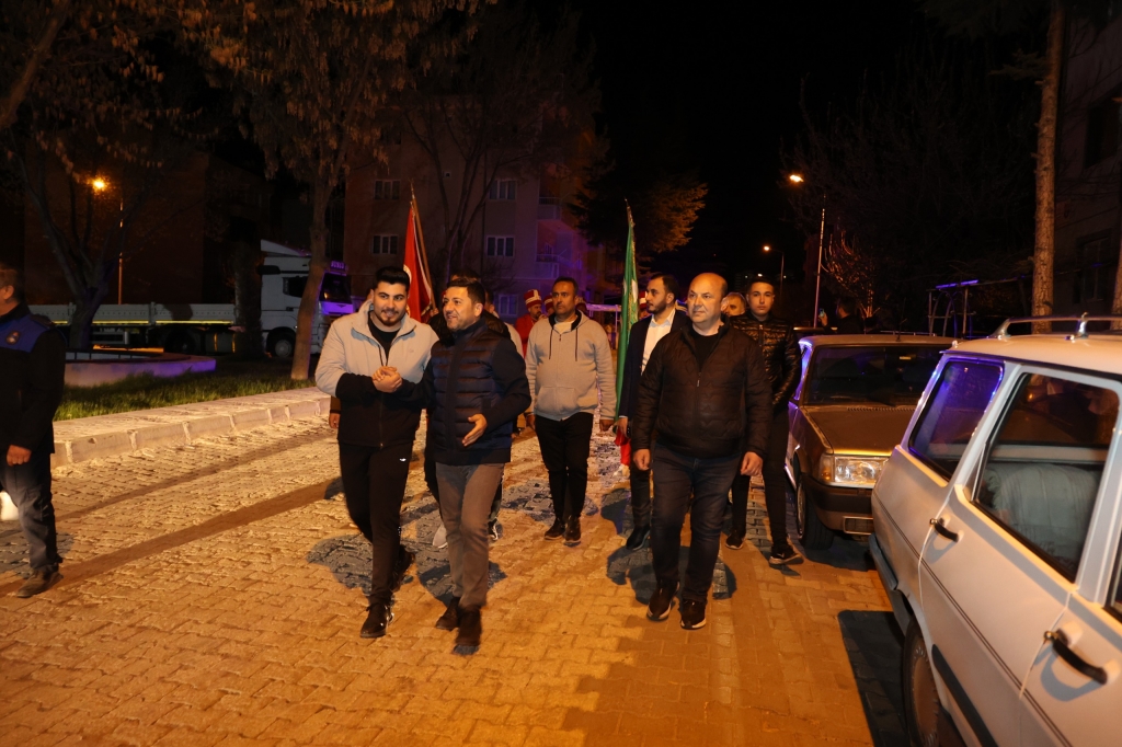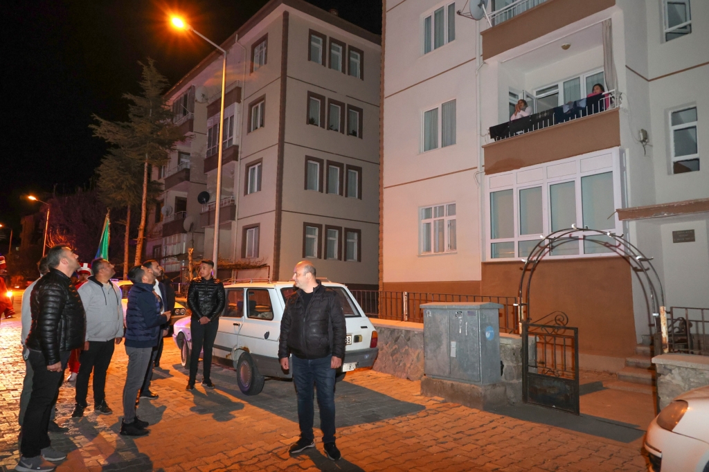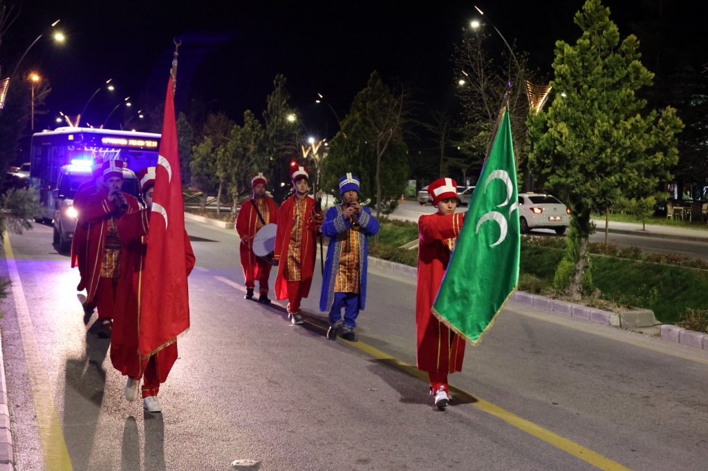 Nevşehir Belediye Başkanı Rasim Arı, gece mehter marşları ile vatandaşları sahura kaldıran mehter takımı ile birlikte vatandaşları selamladı.