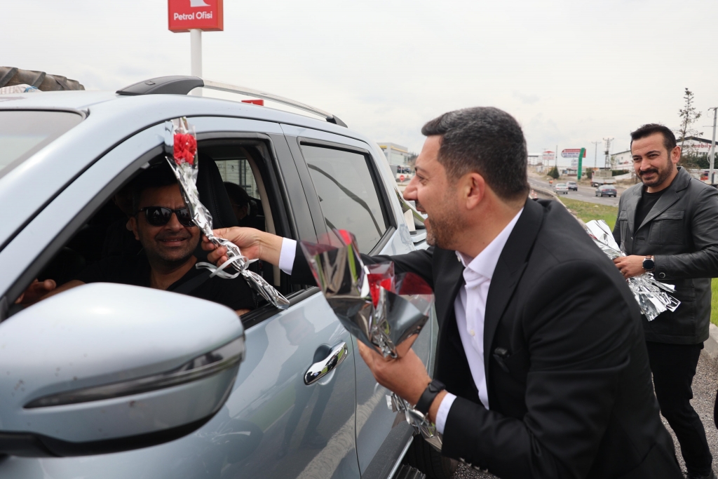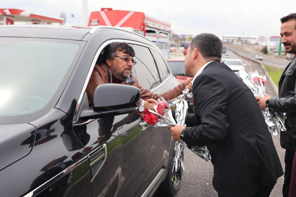 Nevşehir Belediye Başkanı Rasim Arı, Ramazan Bayramı tatilini Kapadokya'da karşılayacak yerli turistleri ve bayram için memleketlerine dönen hemşehrilerini kent girişinde karanfille karşıladı.