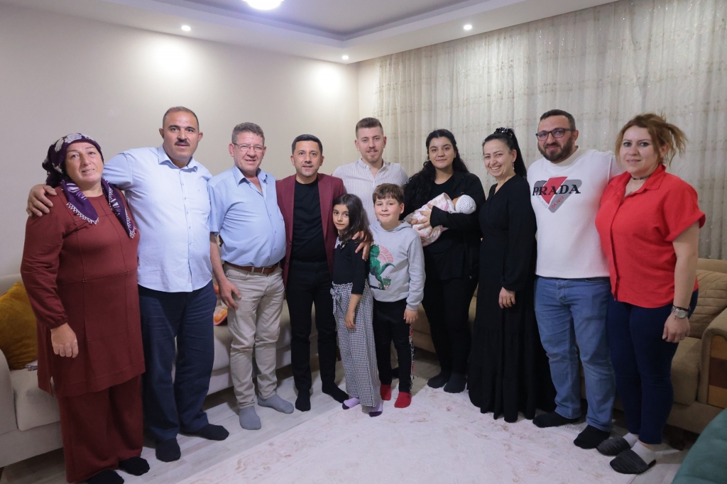 Başkan Arı, düğün törenlerinin ardından bebekleri dünyaya gelen Ezilmez ailesini ziyaret etti. Arı ziyarette, Elif Sare isimli bebeğin kulağına ilk ezanı okudu. Arı: “Adıyla yaşasın, bahtı açık olsun. Allah memlekete, vatana ve millete hayırlı, Peygamber efendimizin ahlakıyla ahlaklanmış güzel bir evlat eylesin inşallah.” dedi.