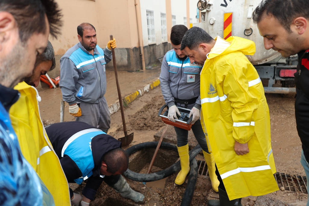 Belediye Başkanı Rasim Arı da gün boyu olumsuzlukların yaşandığı bölgelerde incelemelerde bulunarak ekiplerin çalışmalarını yerinde takip etti.