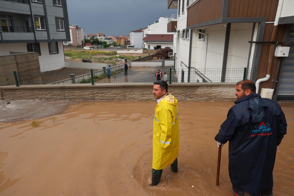 Nevşehir’de etkili olan sağanak yağış dolayısıyla Nevşehir Belediyesi ekipleri, su taşkınlarını engellemek ve yağıştan etkilenen vatandaşlara yardım etmek için yoğun bir çalışma sergiliyor.