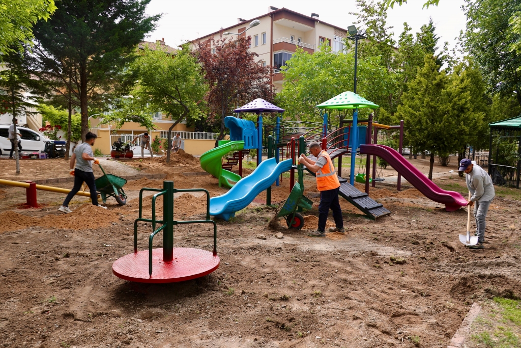 Nevşehir’de son günlerde etkili olan sağanak yağışlar sonrasında hasar gören yol, yaya kaldırımı ve parklarda onarım ve yenileme çalışmaları sürüyor.