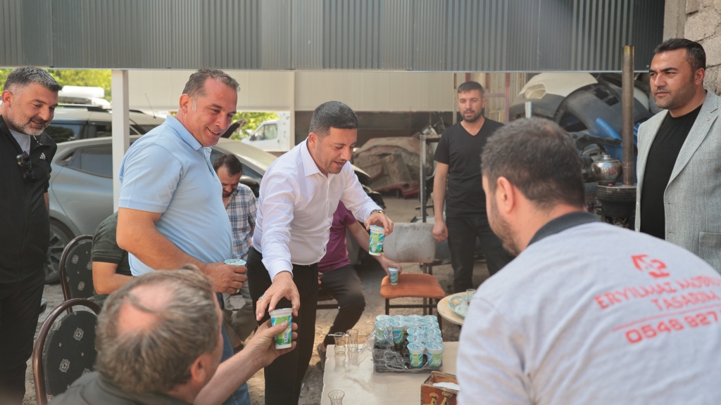 Kendi kullandığı vakumlu süpürge aracı ile temizlik çalışmalarına katılan Arı, belediye personellerine ayran ikramında bulundu.