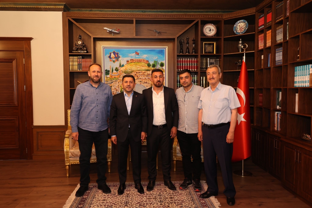 Konuk başkan Eroğlu ziyarette, Rasim Arı’yı tebrik ederek yeni görevinde başarılar diledi.