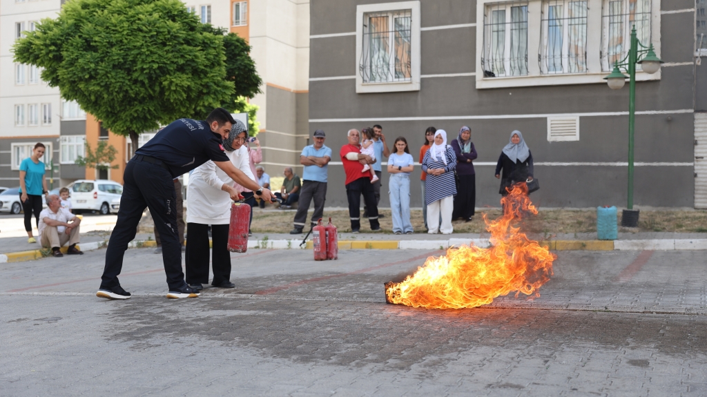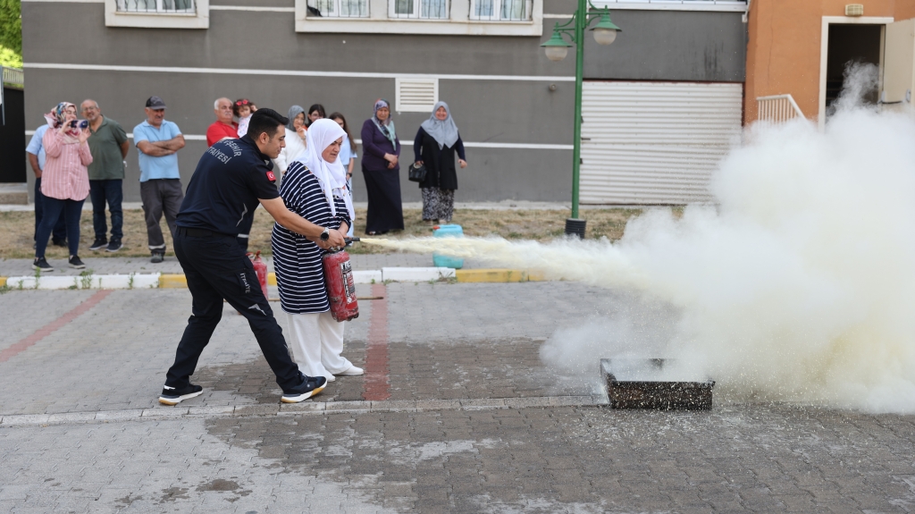 Nevşehir Belediyesi İtfaiyesi, Mehmet Akif Ersoy Mahallesi TOKİ Konutları’ndaki mahalle sakinlerine ve blok görevlilerine yangınla mücadele eğitimi verdi.